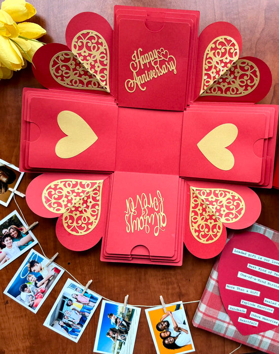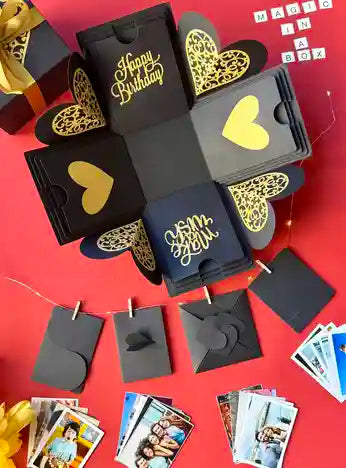 At xploisionbox.com, you can easily create an explosion gift box. Choose from our wide selection of boxes and customize it by uploading your photos and messages. We'll craft the box using your provided content.